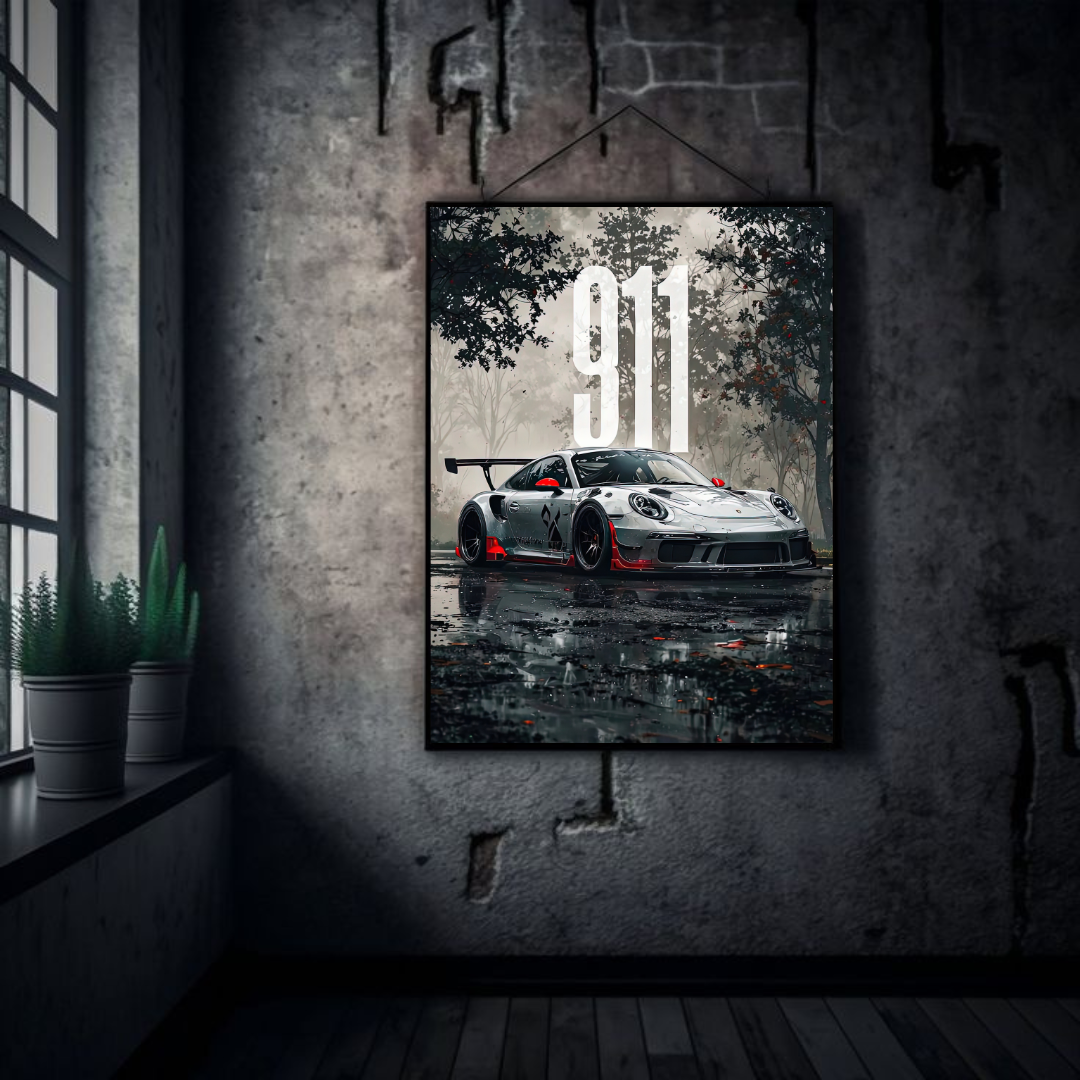 Command wet tarmac like a pro with this electrifying metal poster, capturing the Porsche 911 GT Thunder mid-rain assault – rooster tails exploding from slick tires, rain-lashed curves gleaming under stormy skies, and headlights cutting through downpour like liquid lightning. Precision-sublimated to showcase every hydrodynamic detail: rain-slicked carbon fiber, aggressive diffuser vents, and the iconic silhouette that defines track-bred dominance.