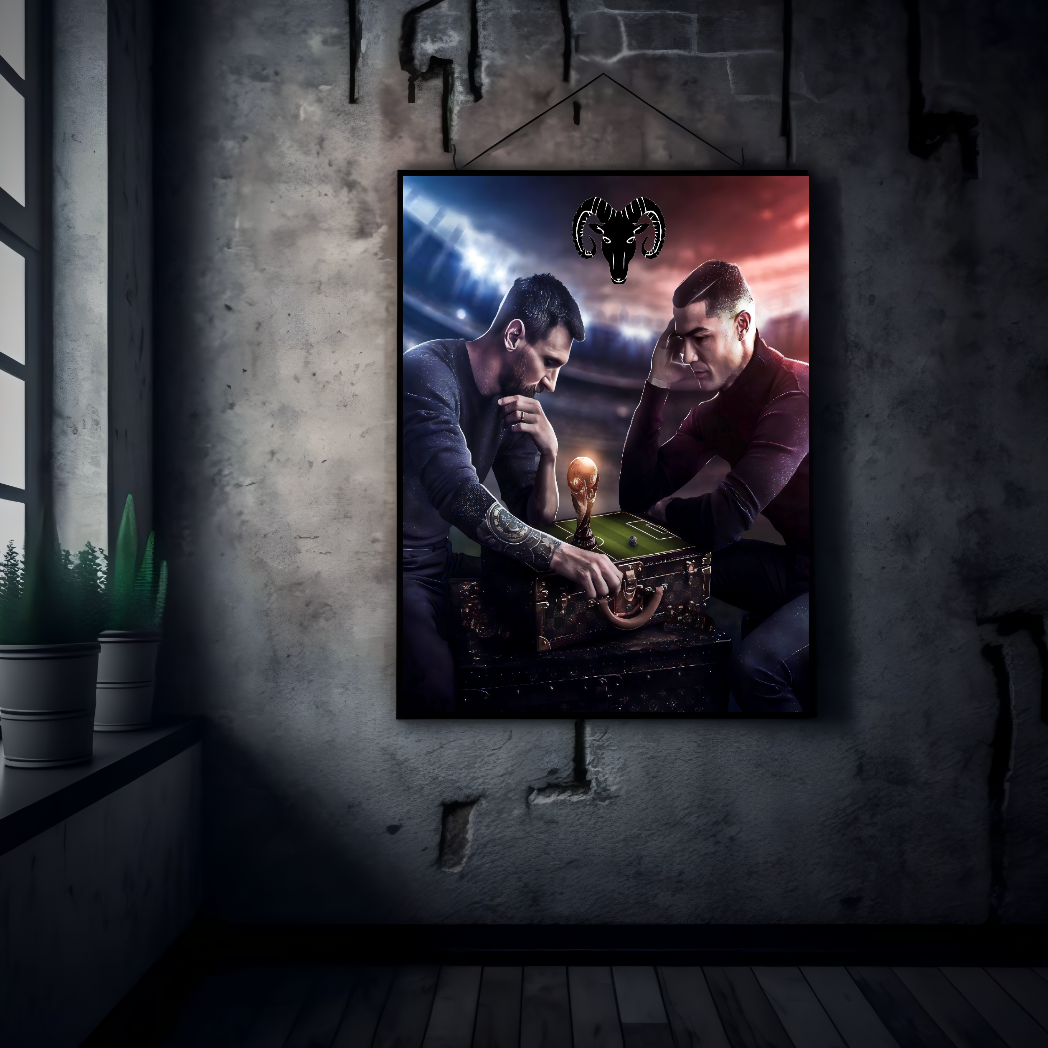 Capture the magic of Cristiano Ronaldo and Lionel Messi in one stunning metal masterpiece. This premium sublimation poster merges artistry with durability, featuring an iconic split design that honors two legends who defined modern football. Perfect for man caves, sports bars, or any fan’s sacred space!