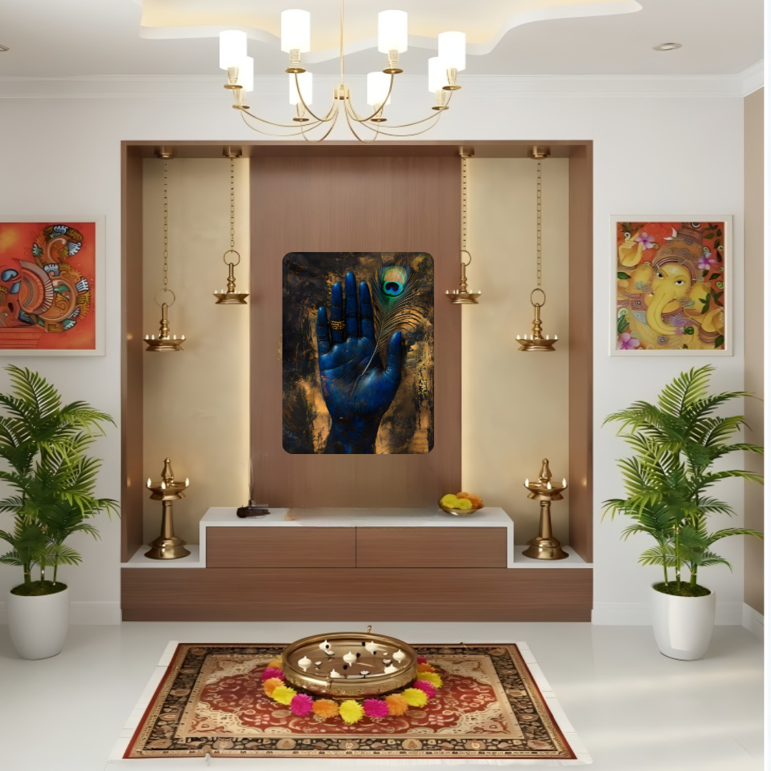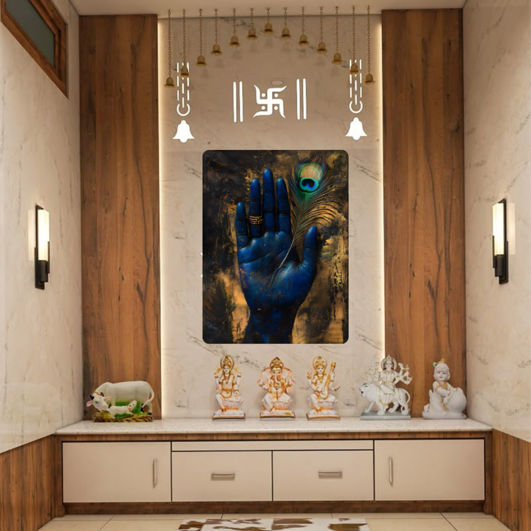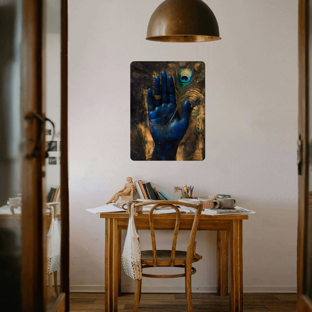 Infuse your home or sacred space with the eternal presence of Lord Krishna. Our exquisite sublimation metal poster captures the intricate beauty and spiritual significance of Krishna's divine hand in breathtaking high-definition. Crafted for devotees, yoga practitioners, and lovers of sacred art.